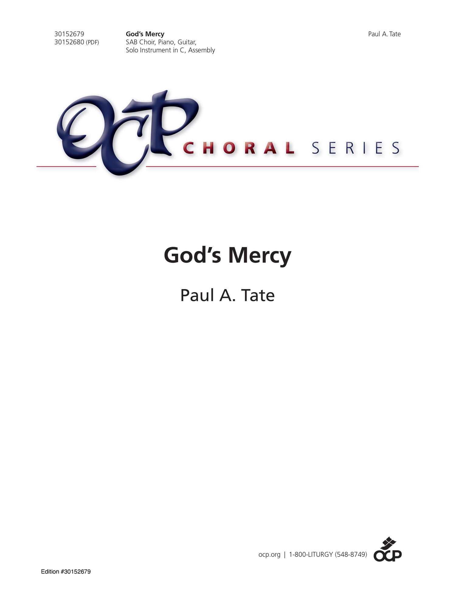 The simple, heartfelt theme of the text, a plea for God's mercy, is reflected by an uncomplicated SAB setting, making it ideal for smaller choirs. Rich added-note harmonies and a solo instrument part keep the texture full and a focus on subdominant-related harmonies underscores the wistful nature of the text. It is appropriate for use throughout the liturgical year, especially at liturgies whose themes include topics of forgiveness, love for others, God's love for us, mercy, redemption, and trust.