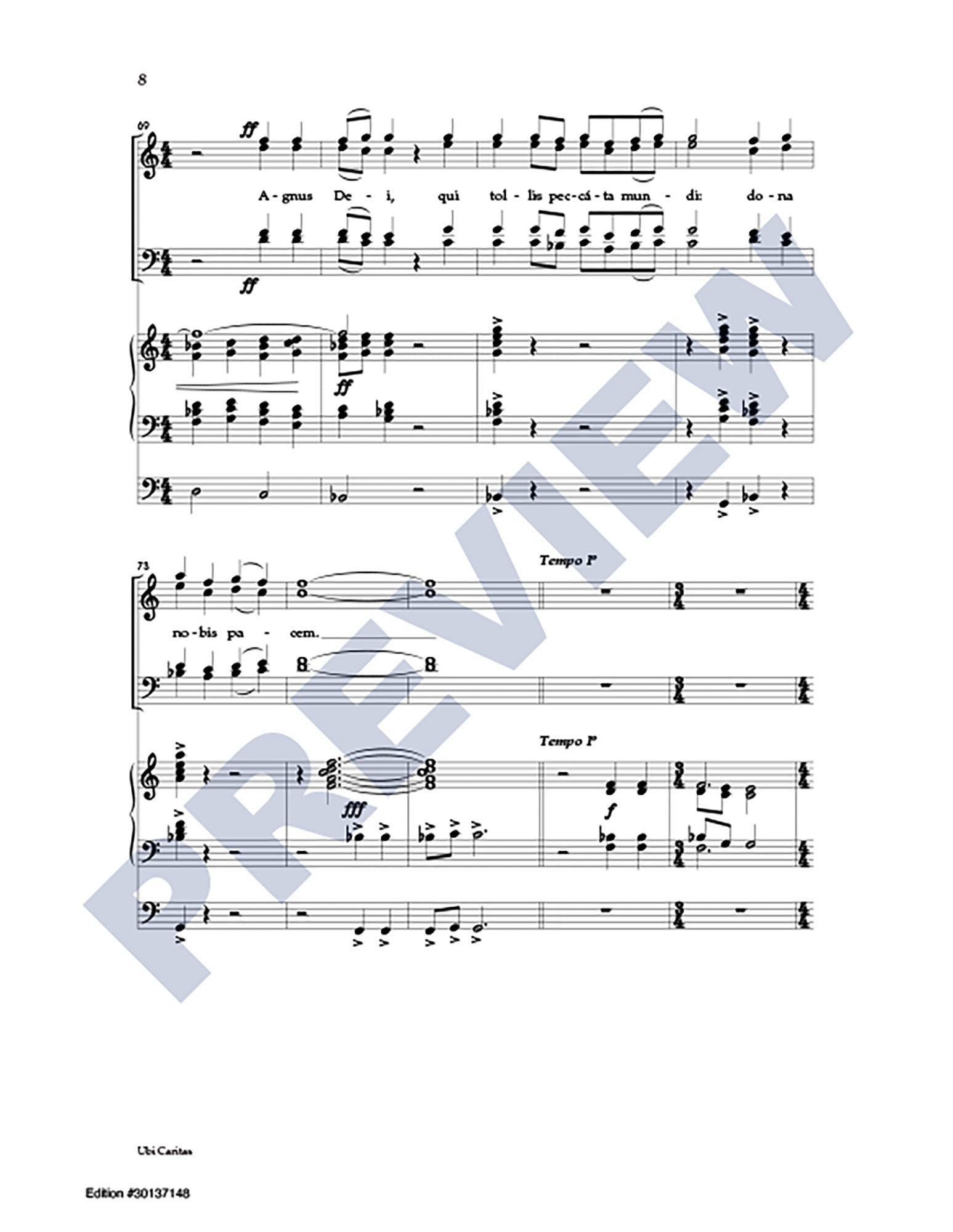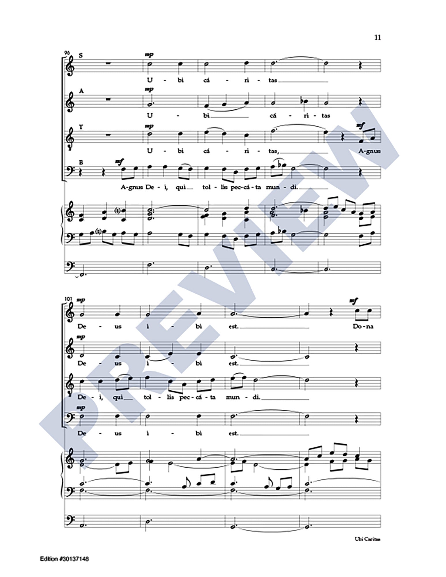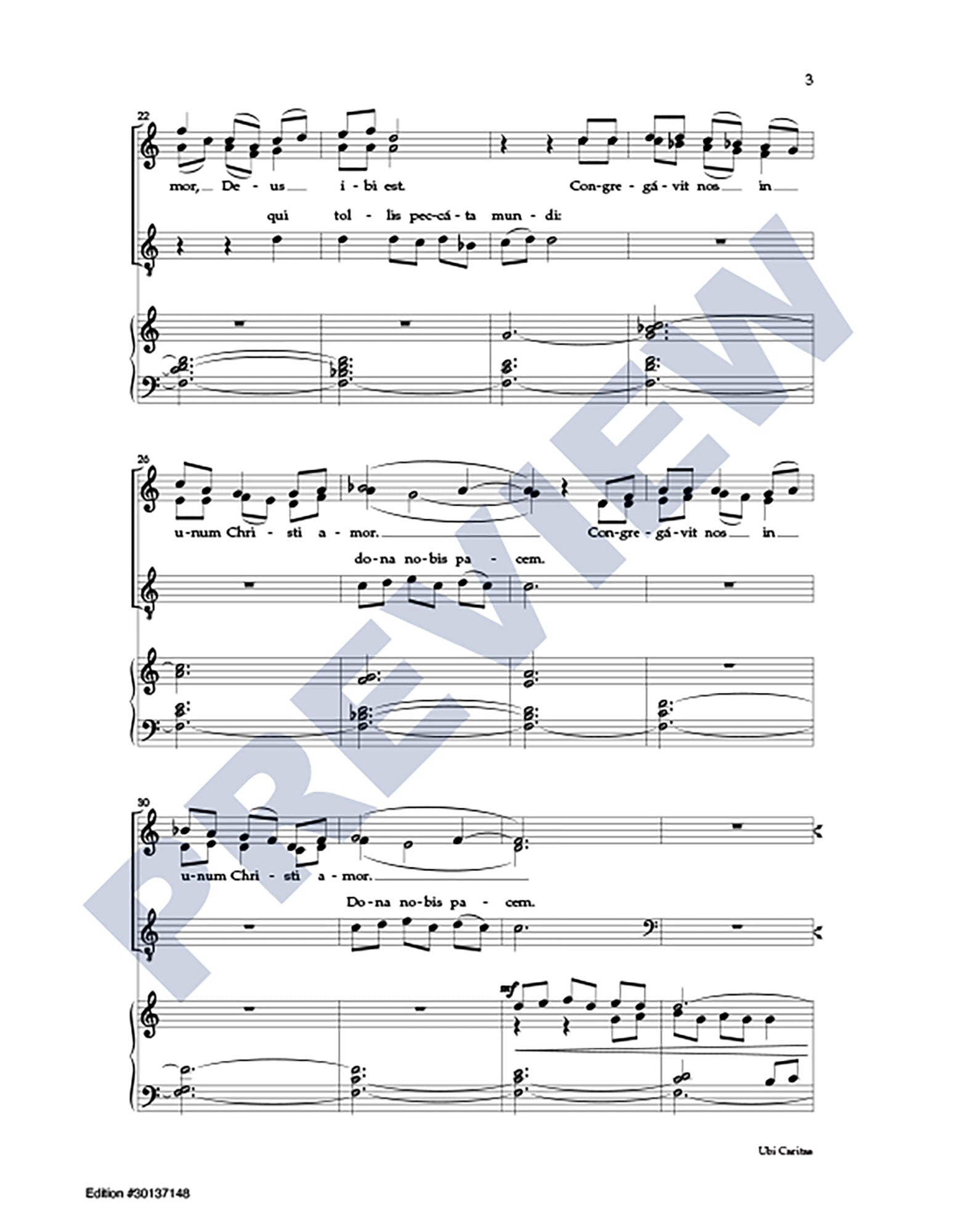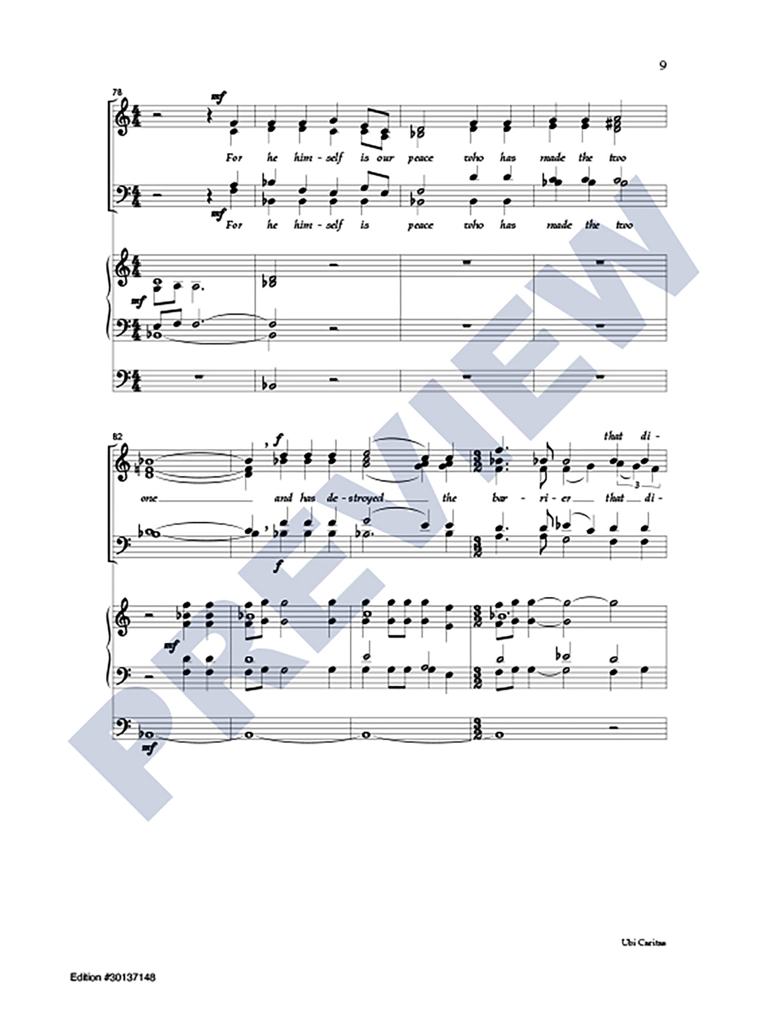 Excerpts from the Latin texts of Ubi Caritas and Agnus Dei are interwoven with a passage from Ephesians in this extended choral anthem (6:25) focusing on themes of peace and unity. For skilled SATB choir and organ.