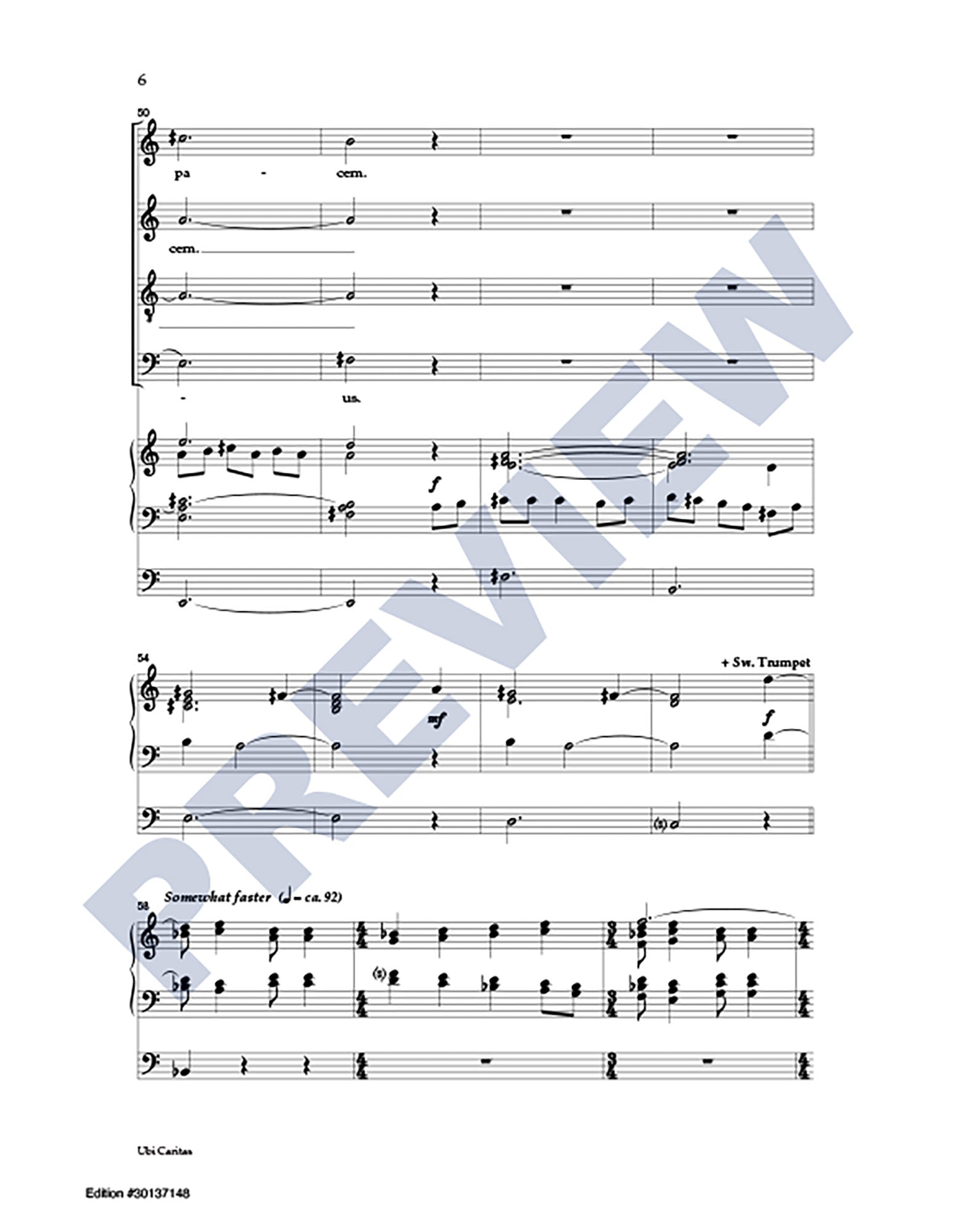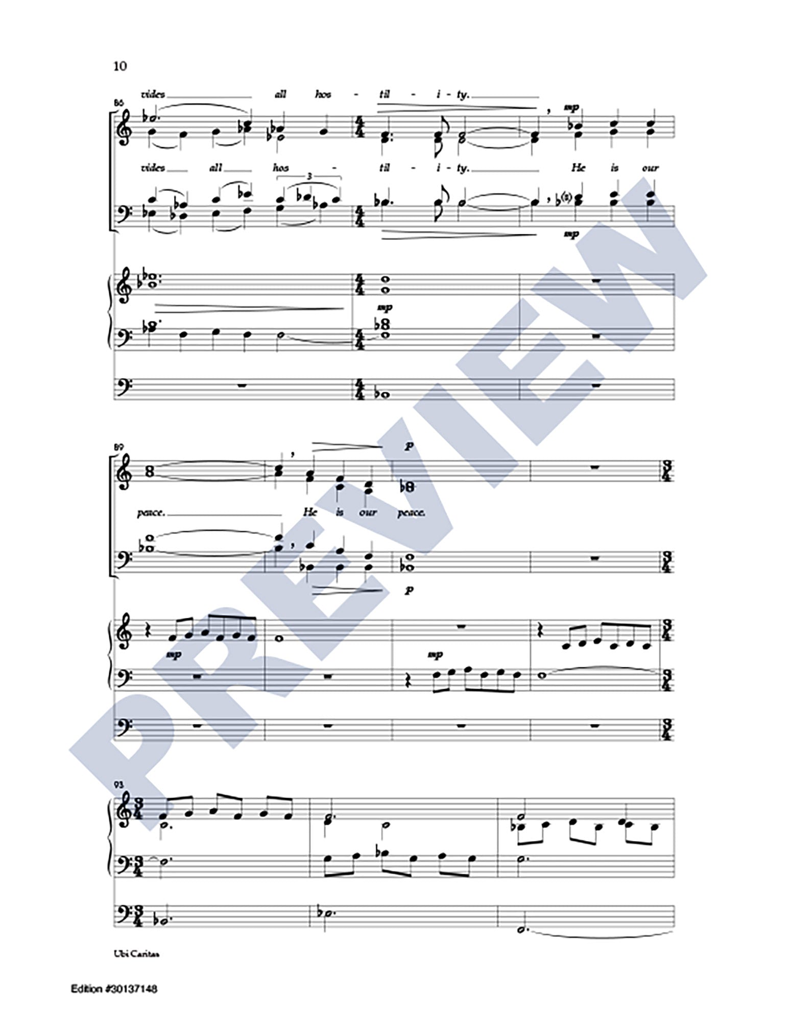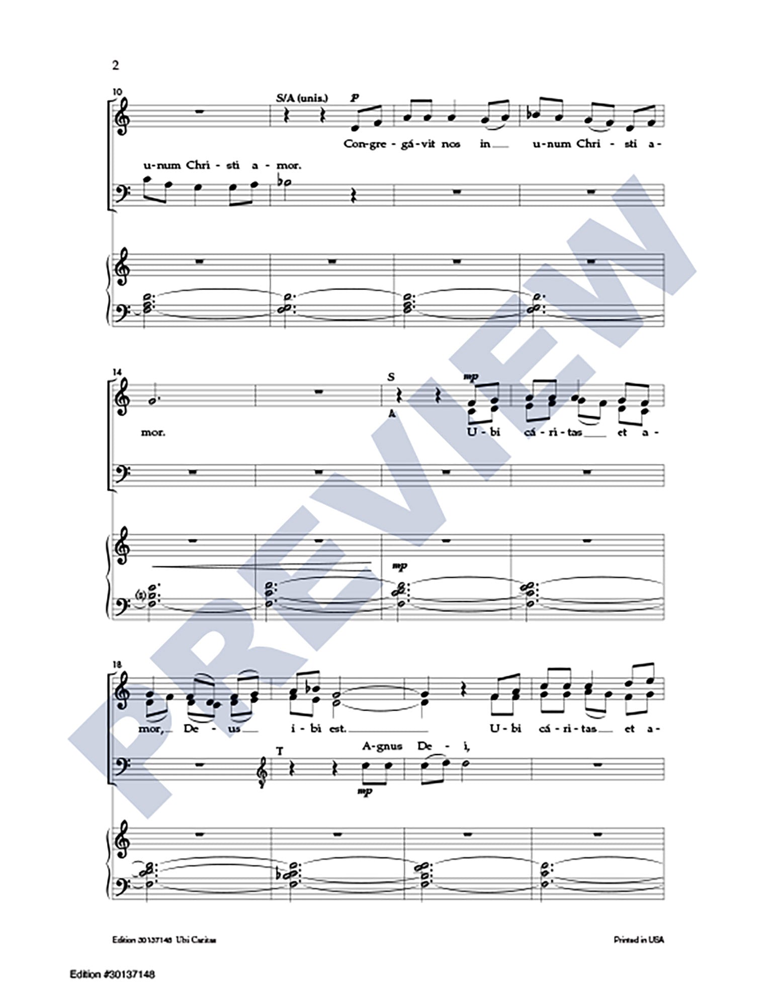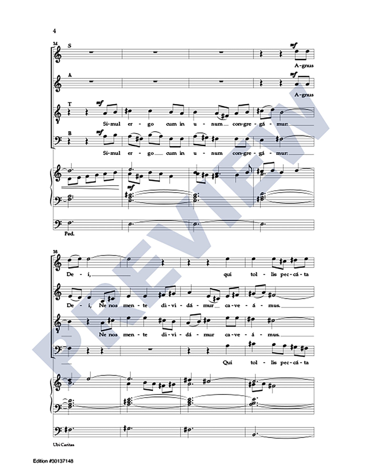 Excerpts from the Latin texts of Ubi Caritas and Agnus Dei are interwoven with a passage from Ephesians in this extended choral anthem (6:25) focusing on themes of peace and unity. For skilled SATB choir and organ.