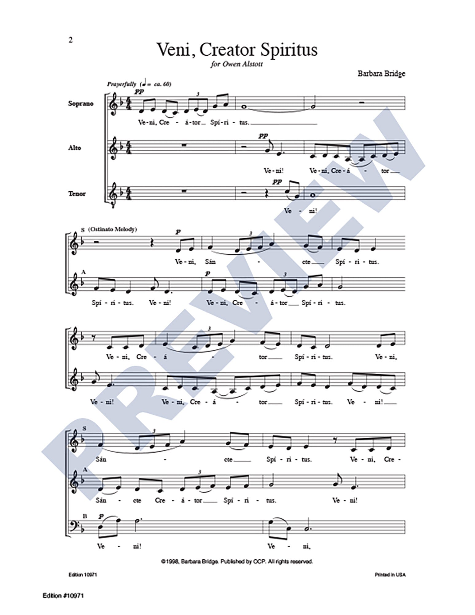 Veni, Creator Spiritus is built around a relentless ostinato, invoking the Holy Spirit to come among us. This octavo contains both a full choral (SSATB) version and a simple ostinato (SAB/Descant) version.