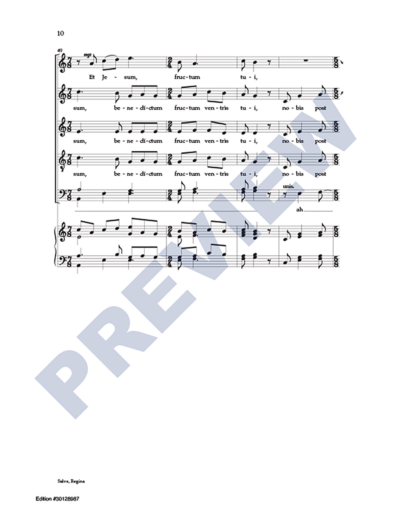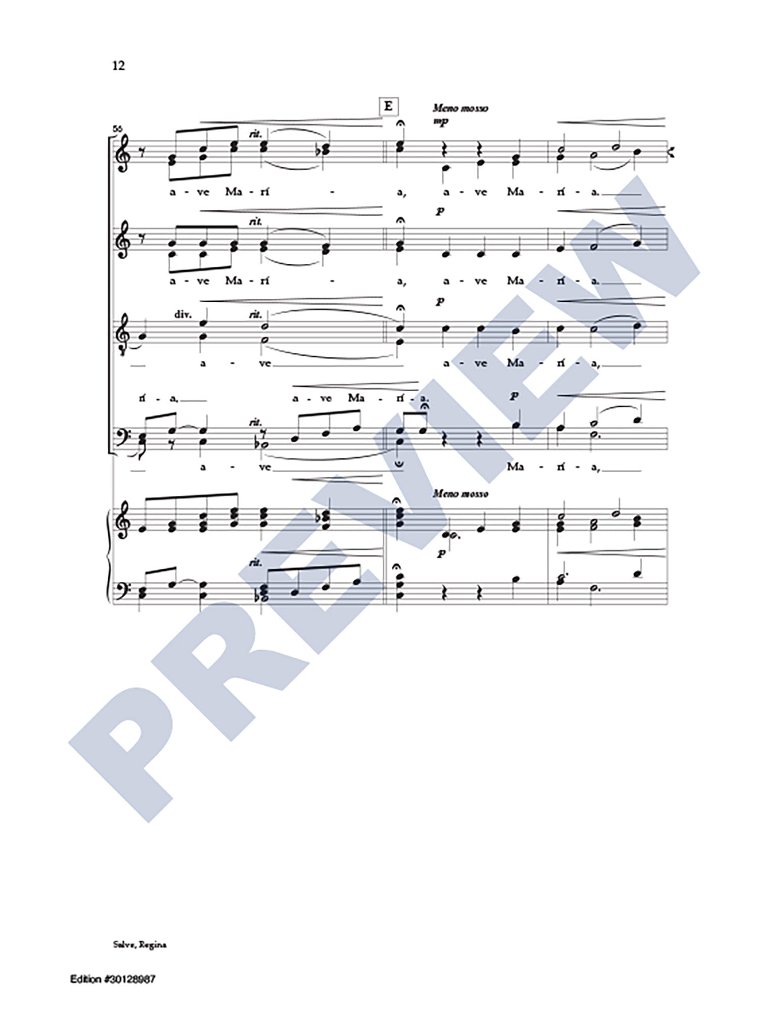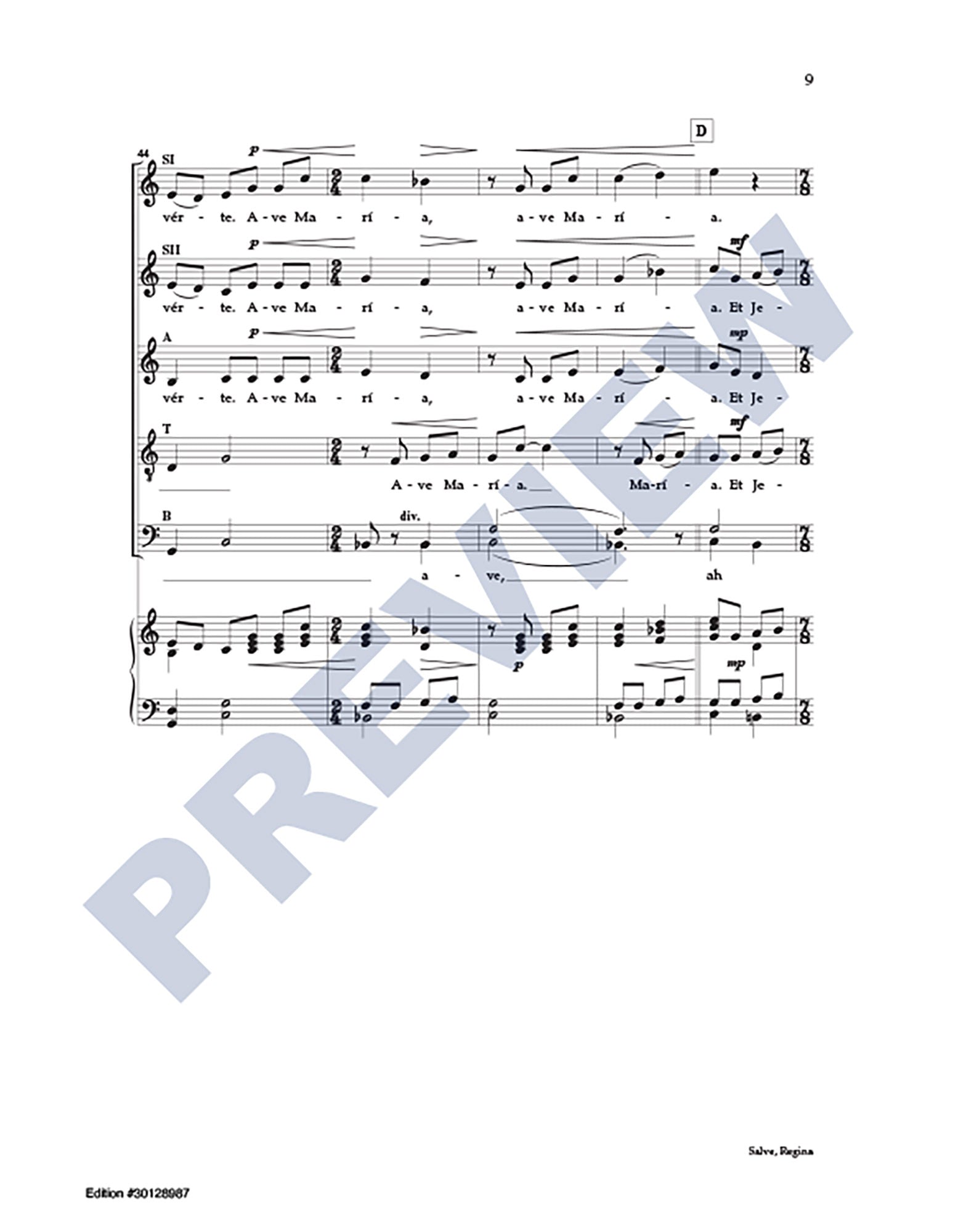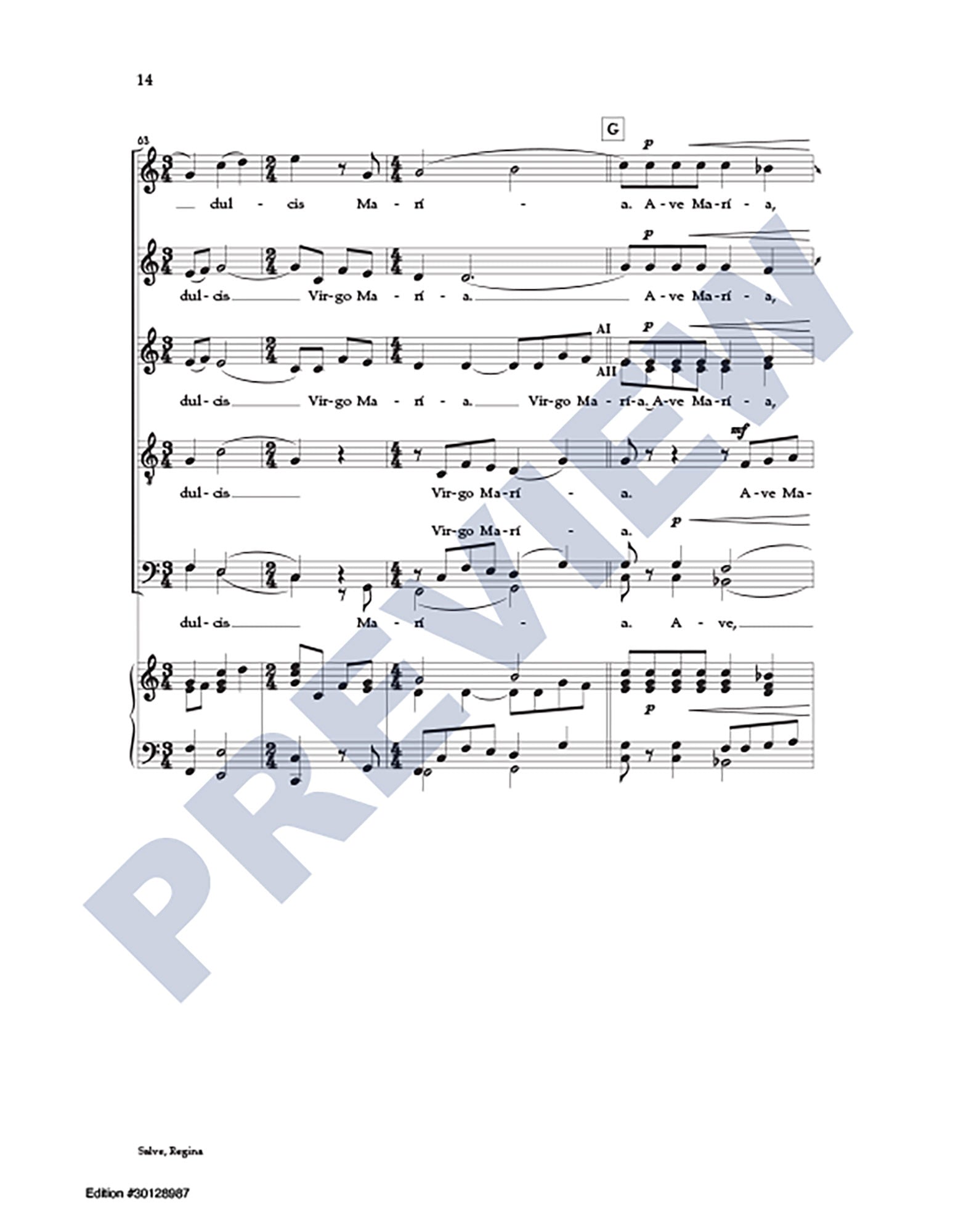 Set for large choir (SSAATBB) with an optional organ accompaniment, this is an attractive arrangement of the well-known Latin chant, which for centuries has been held in special honor by the Carmelites (Sr. Sokol's order). Modal harmonies and shifting meters to accommodate the chant rhythms give the piece a timeless feel, which builds in power and intensity from a simple unaccompanied statement of the chant at the outset, to a stirring forte conclusion sung by the full choir in seven parts.