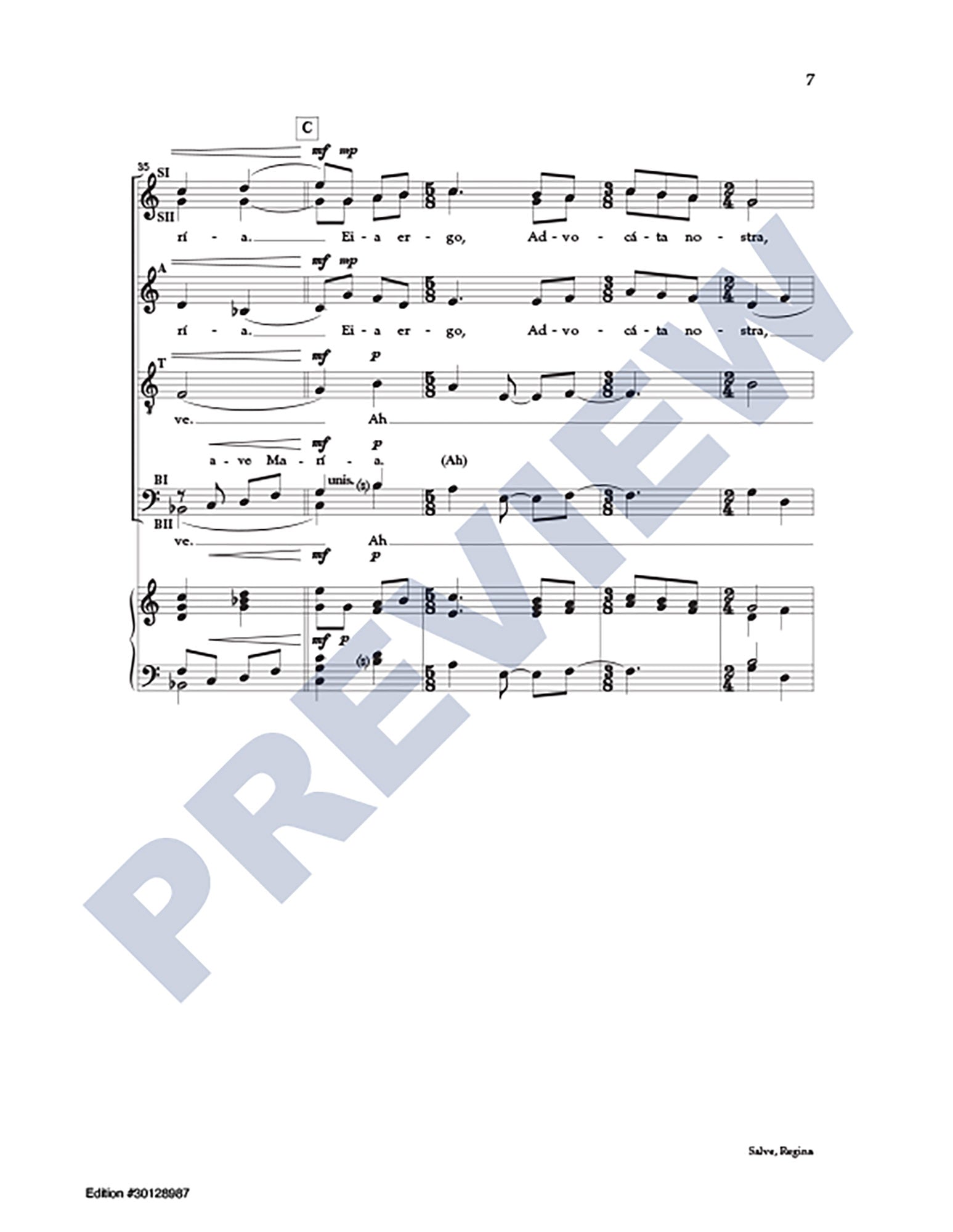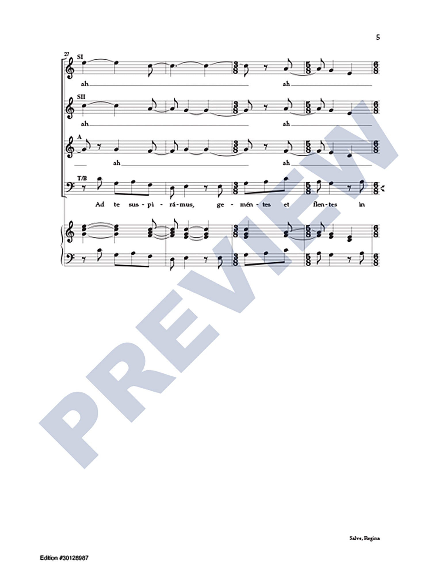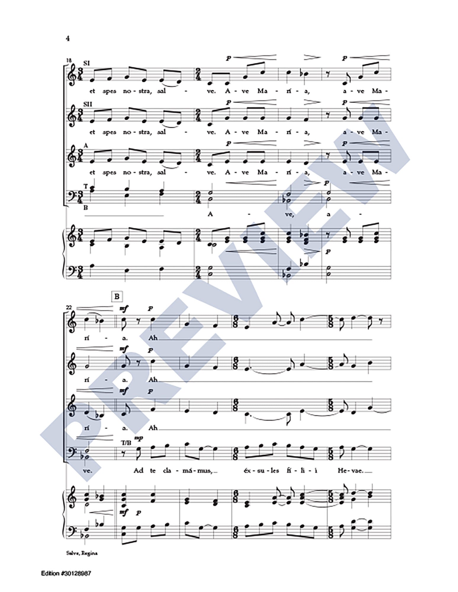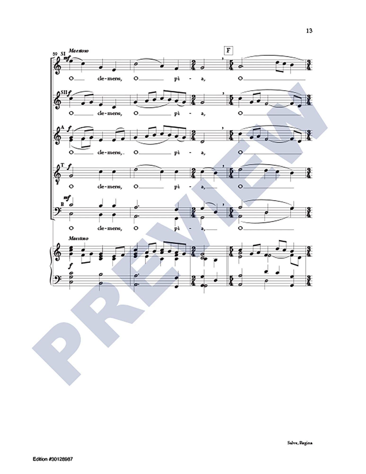 Set for large choir (SSAATBB) with an optional organ accompaniment, this is an attractive arrangement of the well-known Latin chant, which for centuries has been held in special honor by the Carmelites (Sr. Sokol's order). Modal harmonies and shifting meters to accommodate the chant rhythms give the piece a timeless feel, which builds in power and intensity from a simple unaccompanied statement of the chant at the outset, to a stirring forte conclusion sung by the full choir in seven parts.