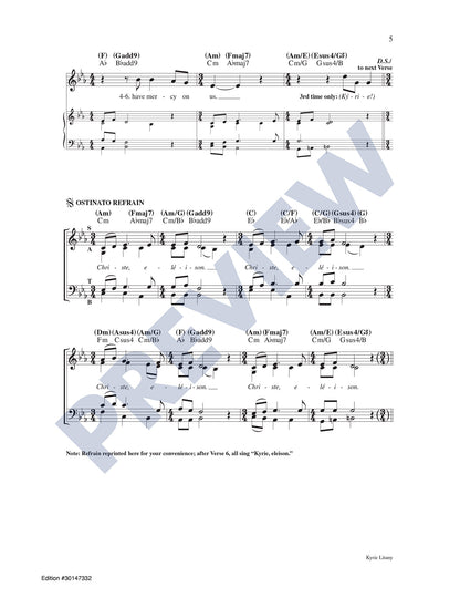 This meditative ostinato setting of the Kyrie in the style of Taizé may be used in a variety of ways, accompanied or a cappella. The litany is scored for SATB choir, cantor, keyboard, guitar, and solo instrument. In addition to a full set of verses based on the 11th century Sarum Missal, the composer has included his own suggested intentions for use of the refrain with the Universal Prayer (Prayer of the Faithful). Congregations will find this piece especially effective for the season of Lent and for the Rite of Penance (Reconciliation).