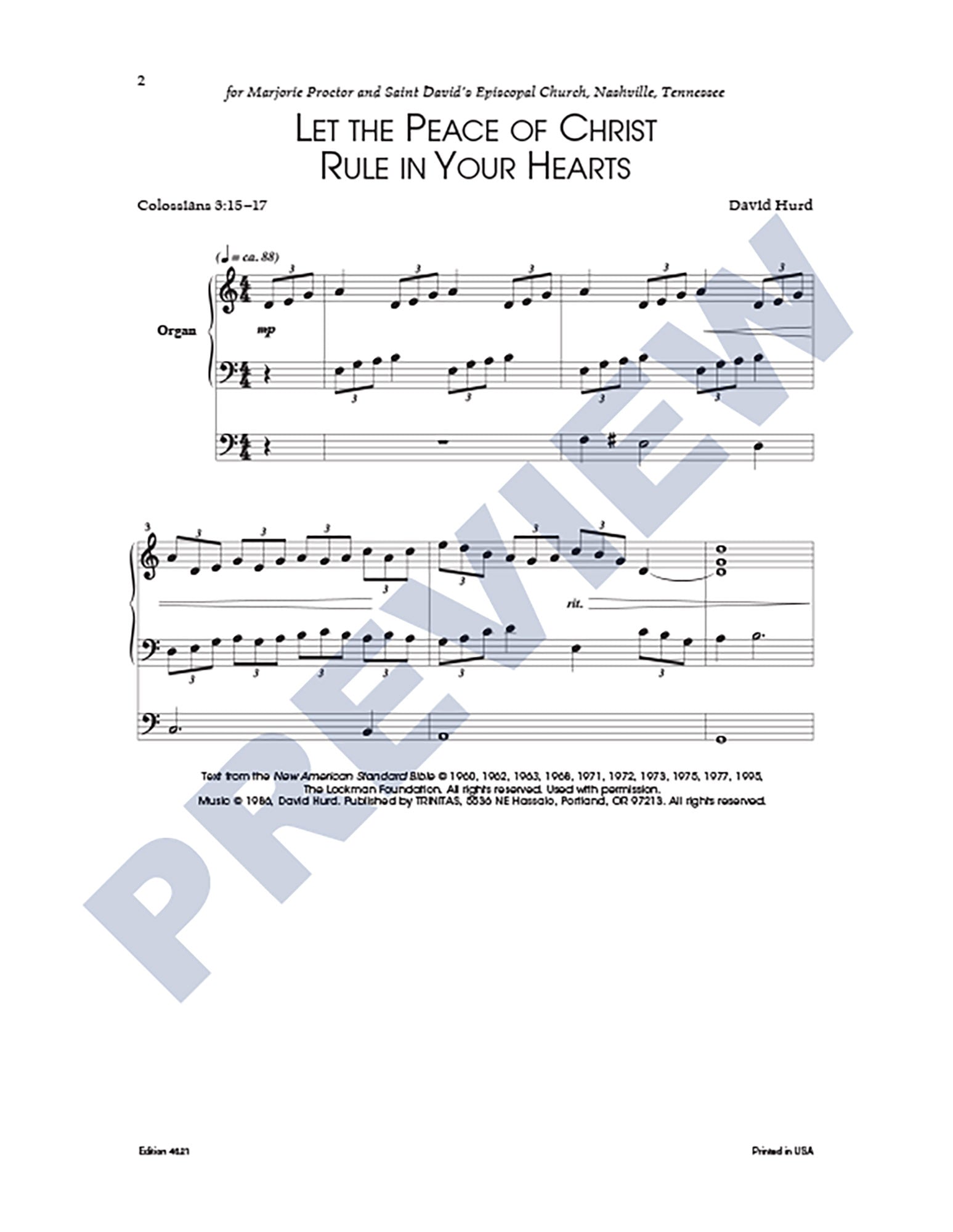 LITURGICAL NOTES: This is a setting of Colossians 3:15-17, touching on themes of Thanksgiving, Peace, and Wisdom.