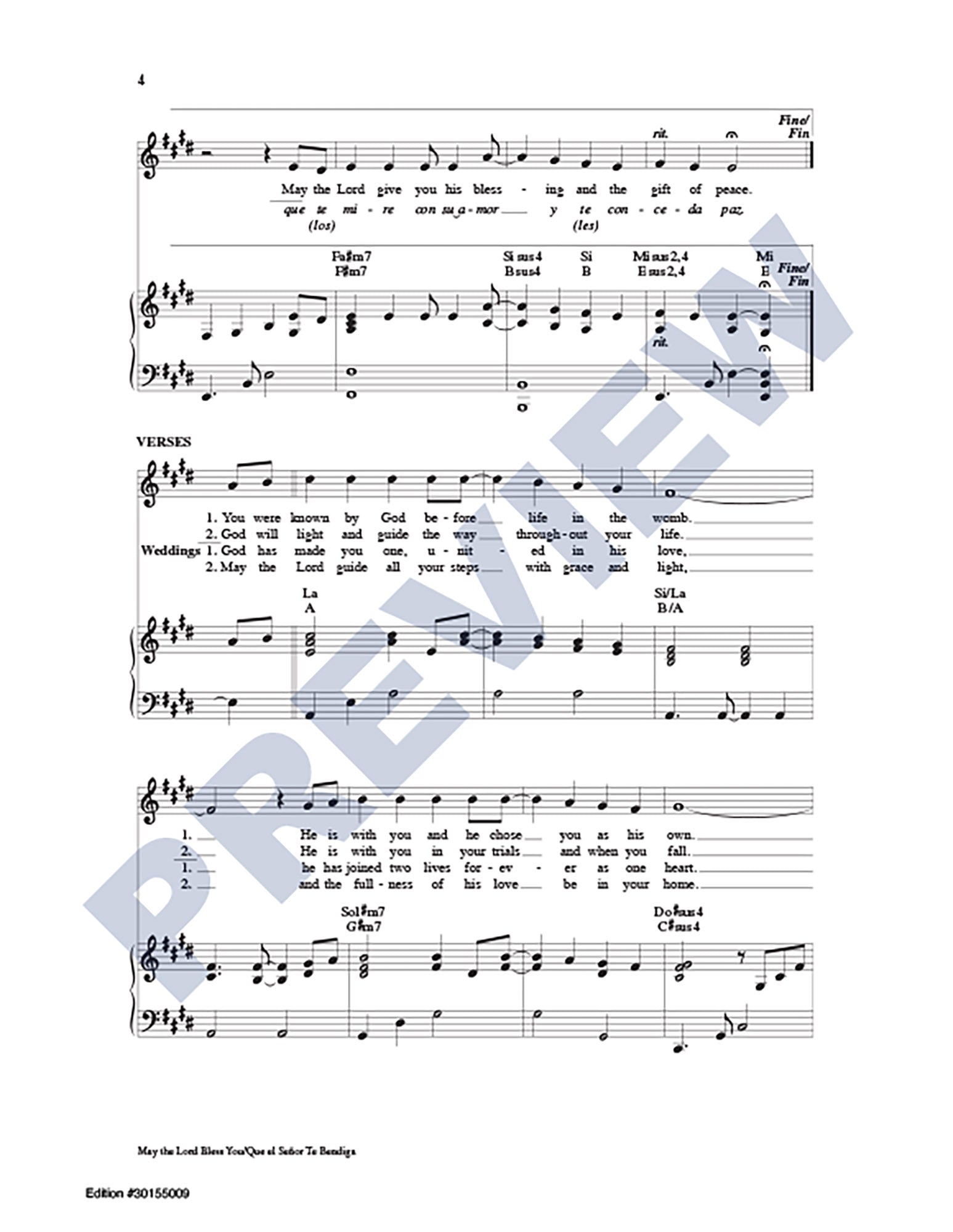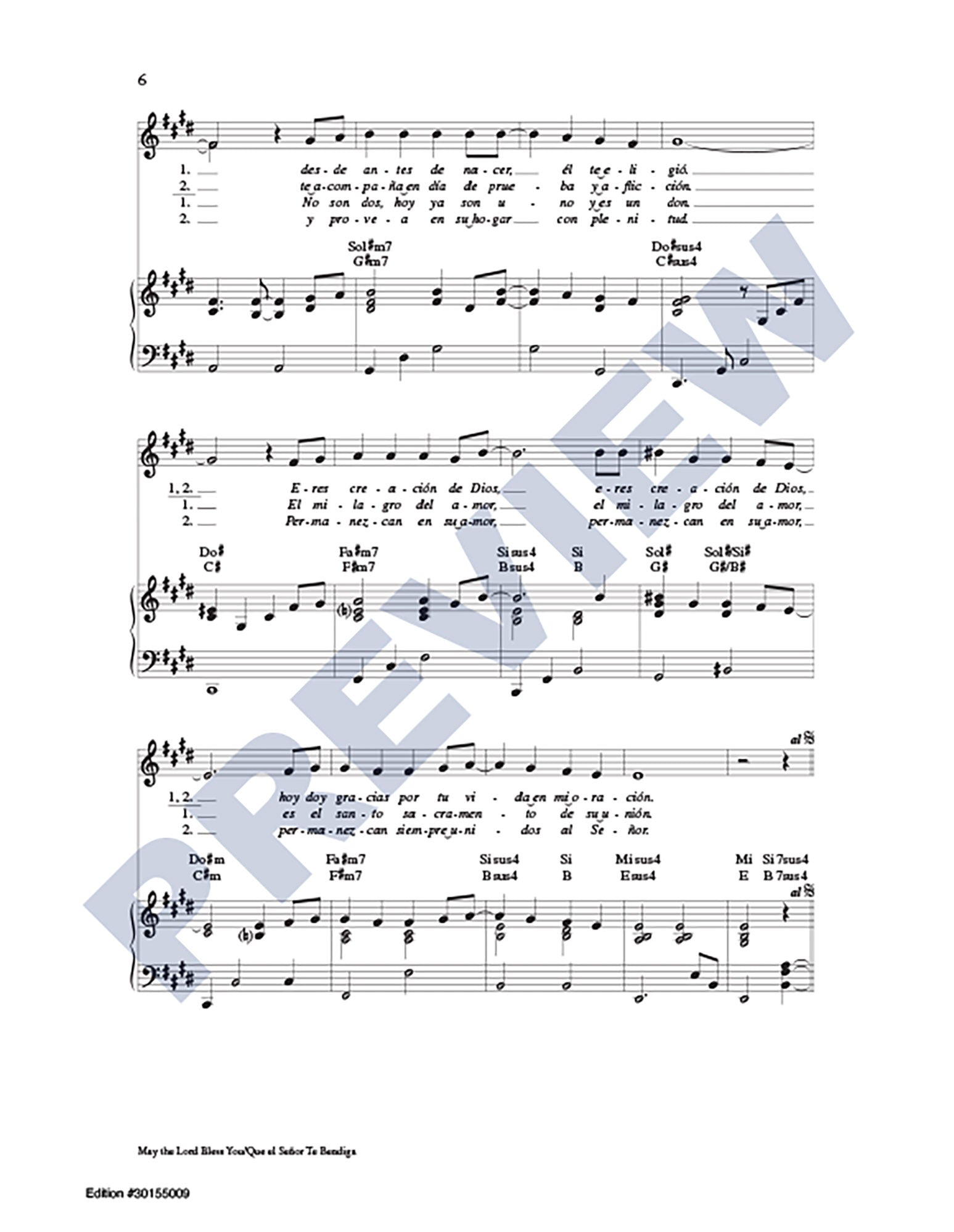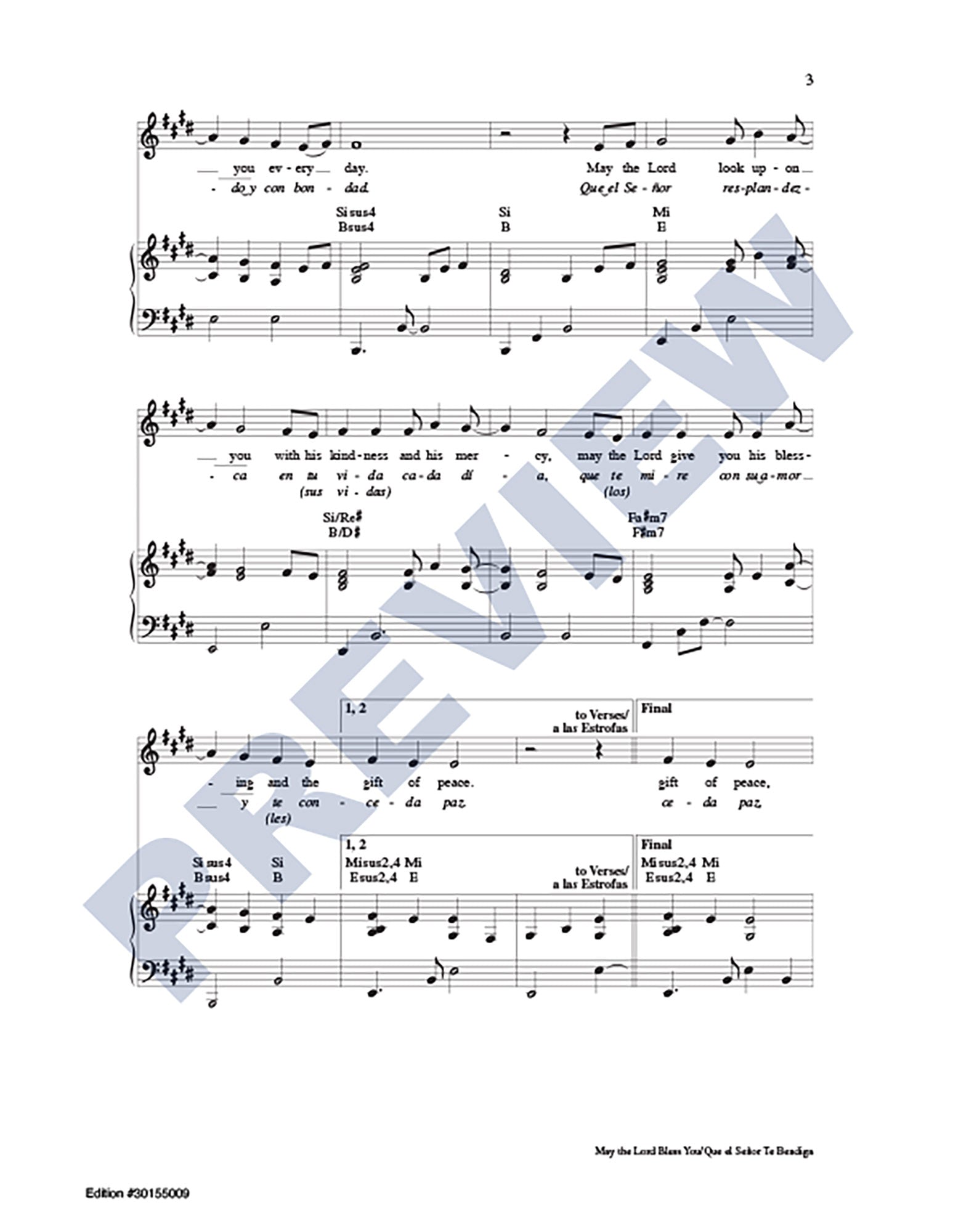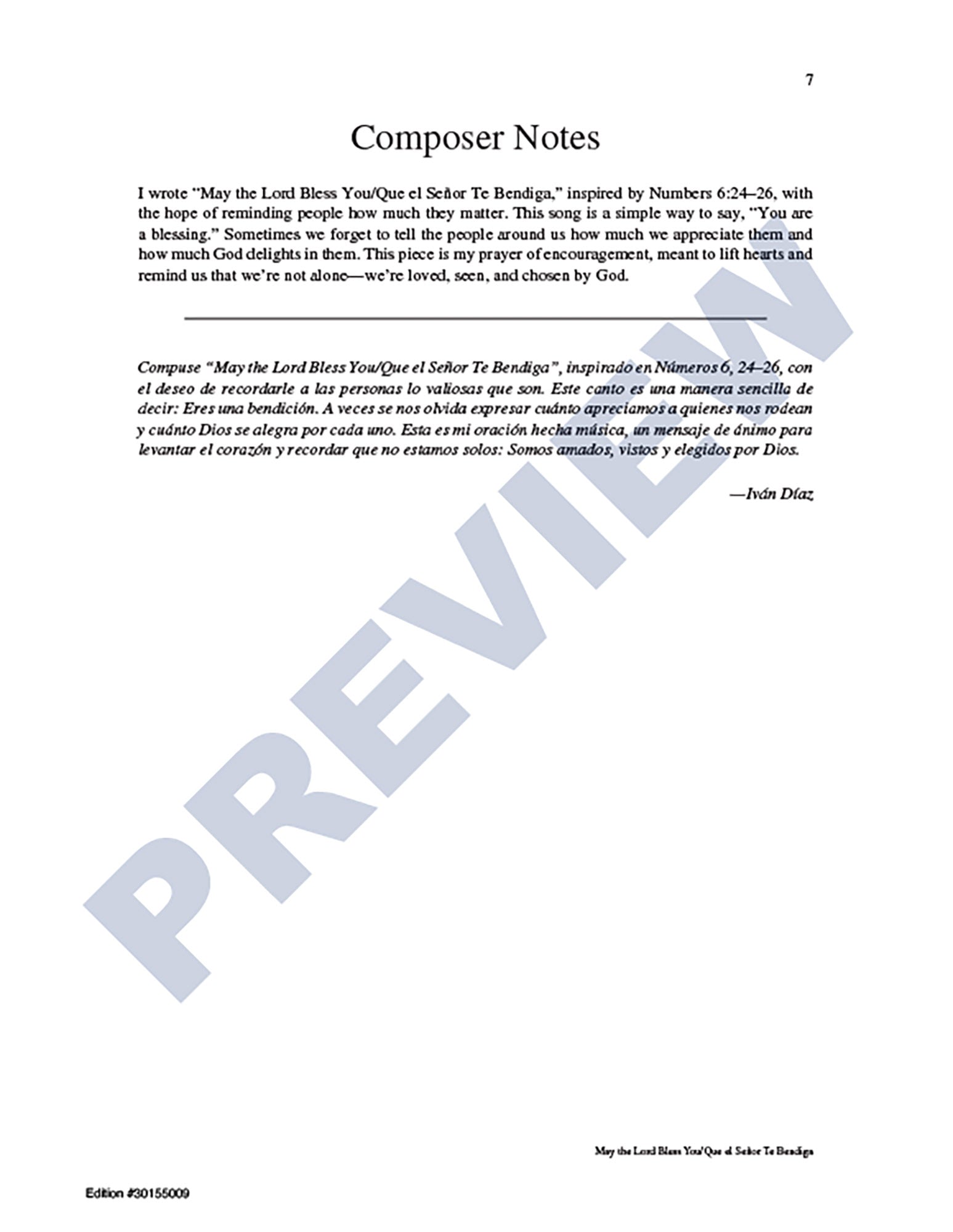 Inspired by Numbers 6:24–26, this title was written with the hope of reminding people of how much they matter. Primarily for use as a blessing song, this bilingual piece (English/Spanish) can be used in several different settings, including weddings, for which it has two dedicated verses. Scored for SAB choir, keyboard, and guitar, the flowing, catchy melody of this piece will have people singing it by memory in just a few passes.