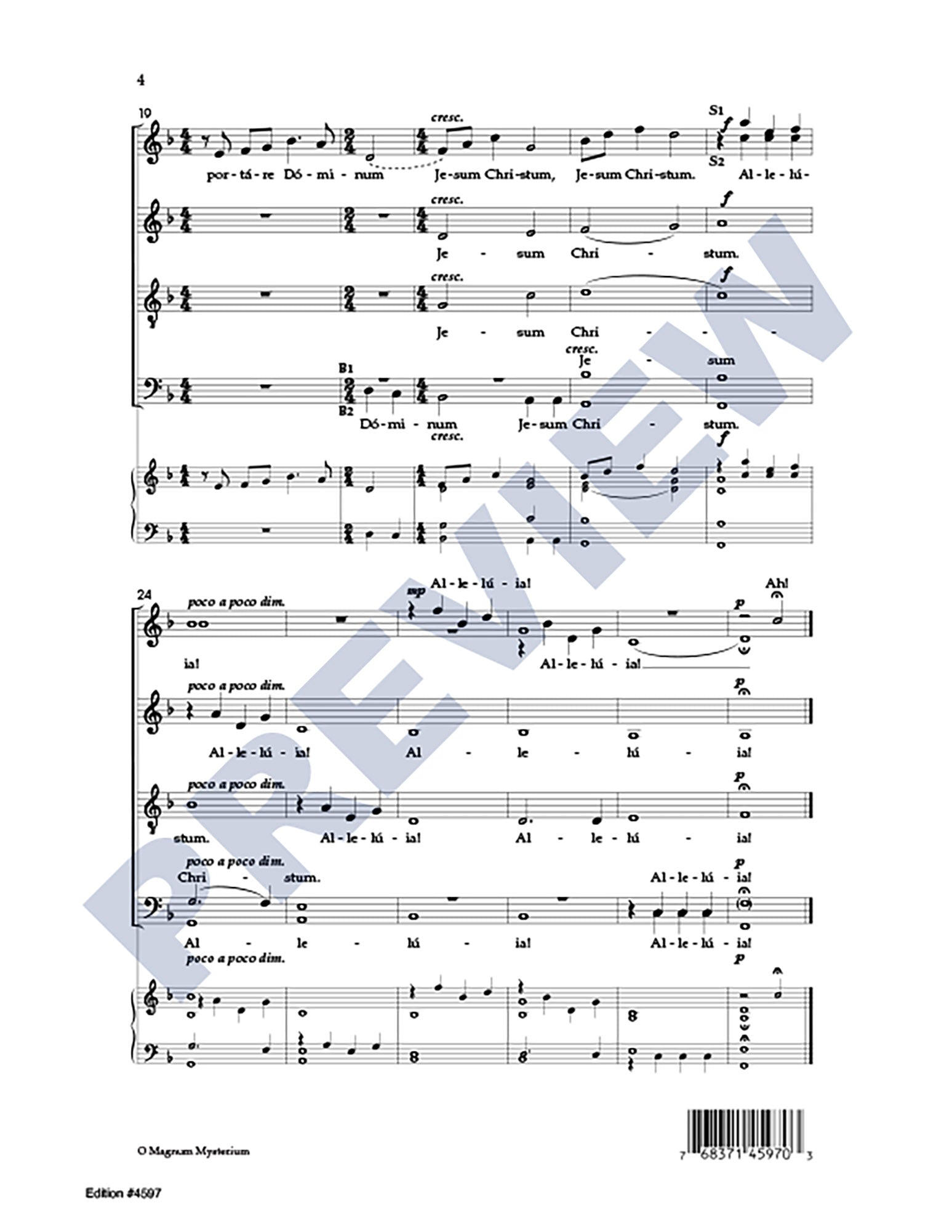 Motivically based around the arpeggiations of minor seventh chords, this lovely, brief musical presentation of this text is set for a cappella SATB choir, with some divisi. The sopranos carry the lead until an imitative concluding "Alleluia." Intermediate choirs will enjoy singing this piece.