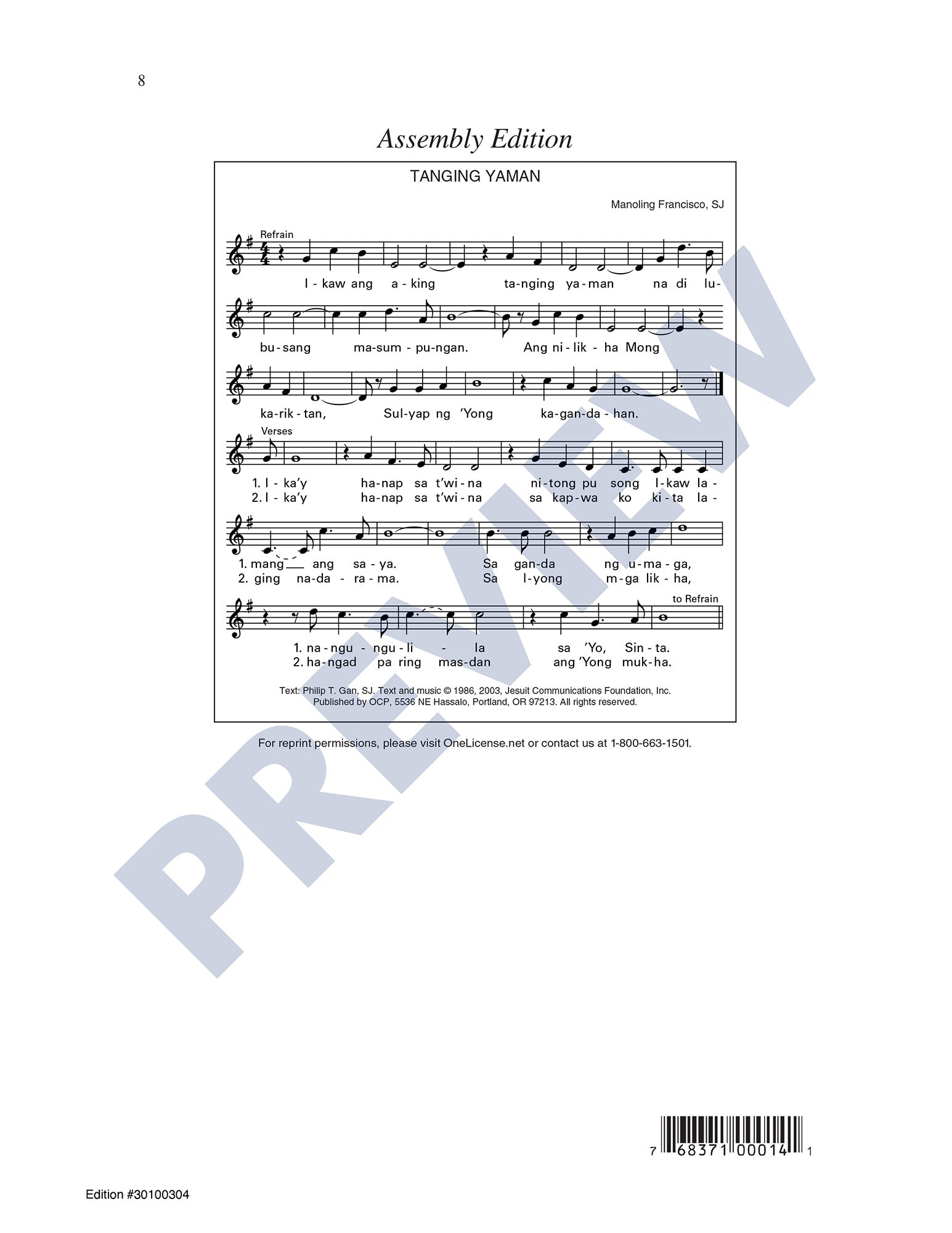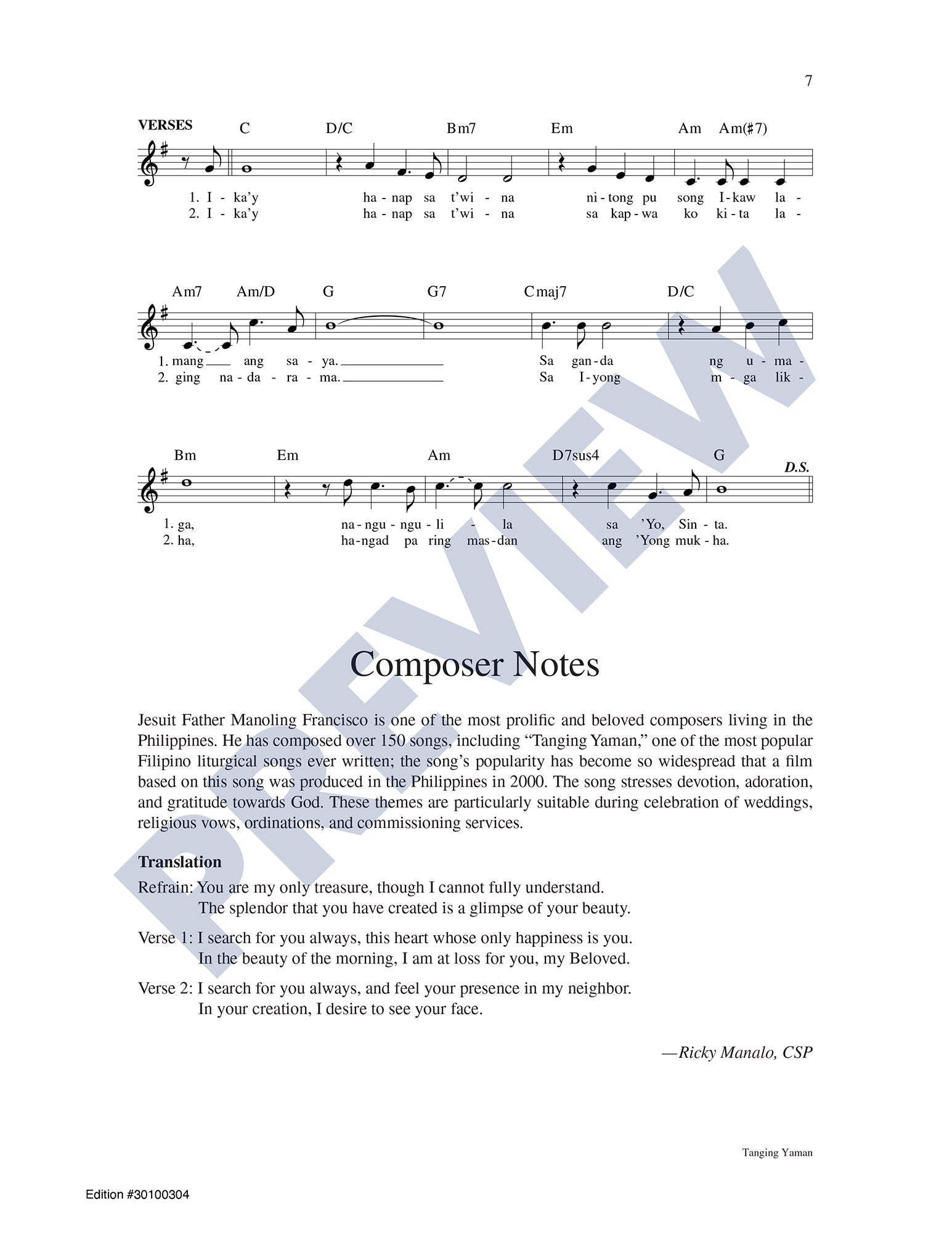 Useful throughout the liturgical year because of its general devotional nature, this flowing and approachable Filipino song beautifully portrays a longing for God. It is scored for SATB choir with descant accompanied by keyboard and guitar. (Note: there are no English lyrics in this octavo).