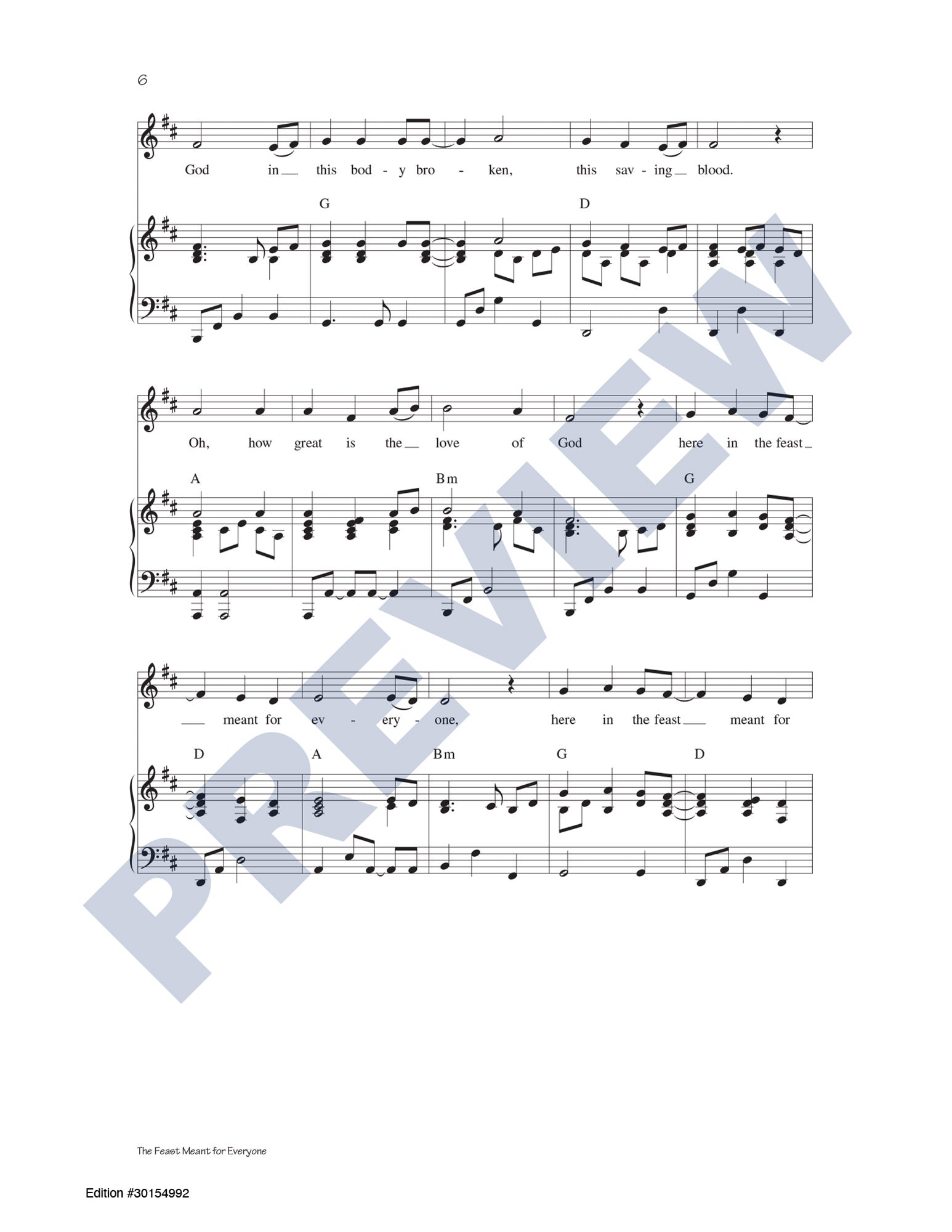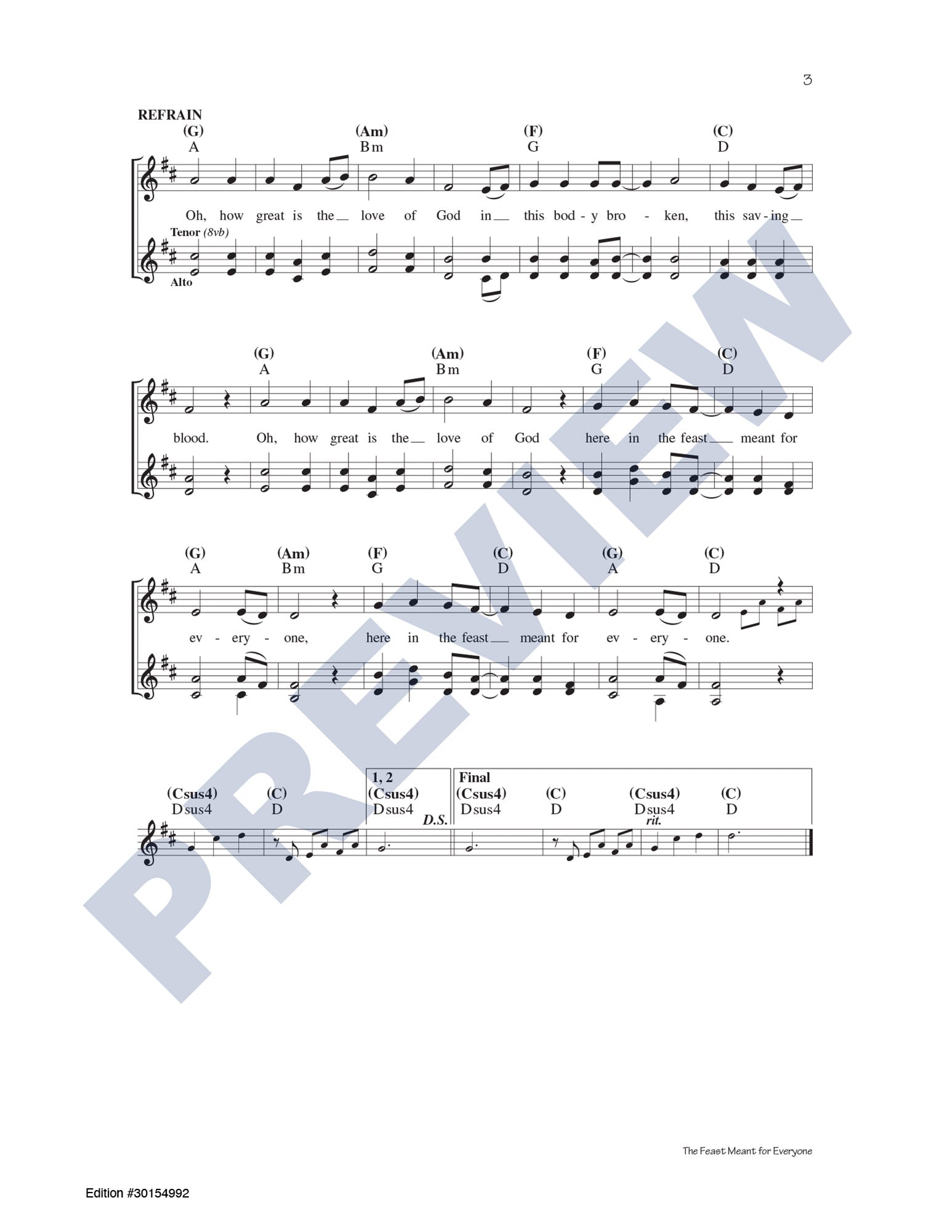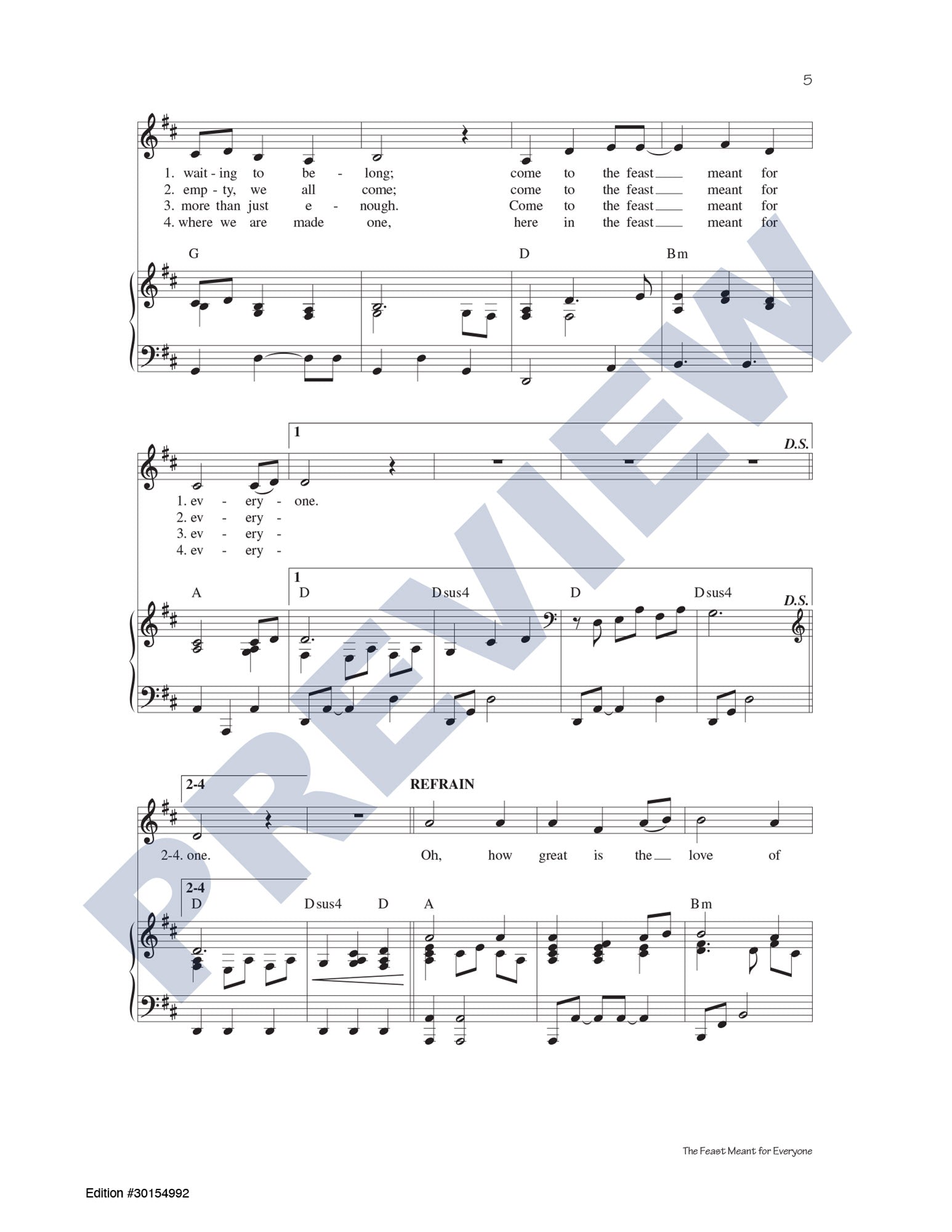 Written as a reminder to us all that we are called to sit at God's table, this title is an inspiring song that focuses on love and inclusion. Great for communion and moments showing the love that God and others have for all. Composed for three-part choir, piano, and guitar.