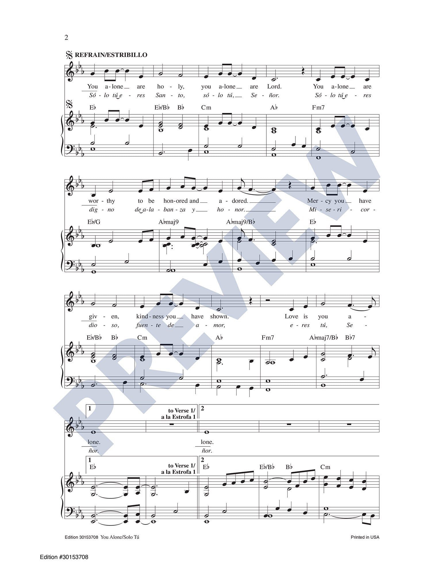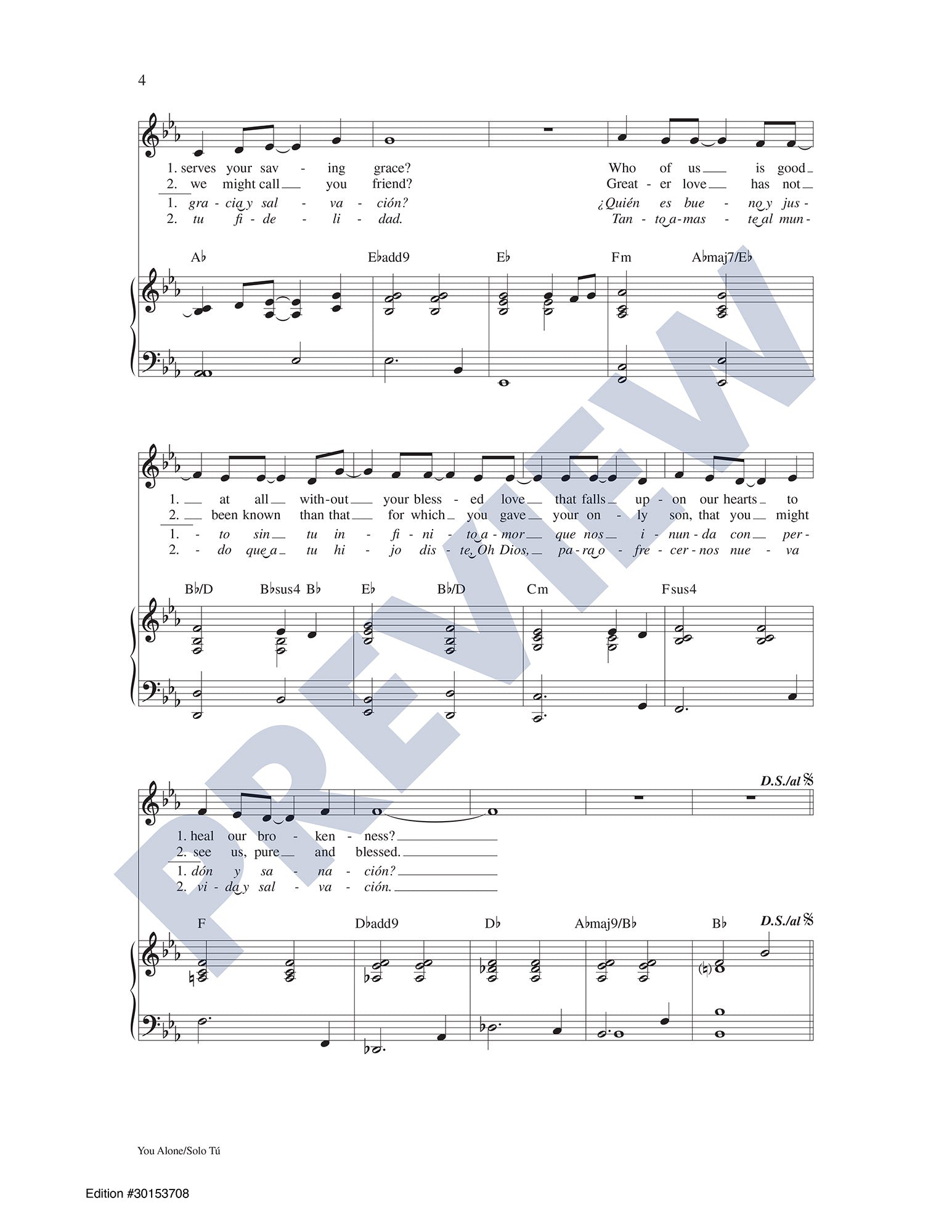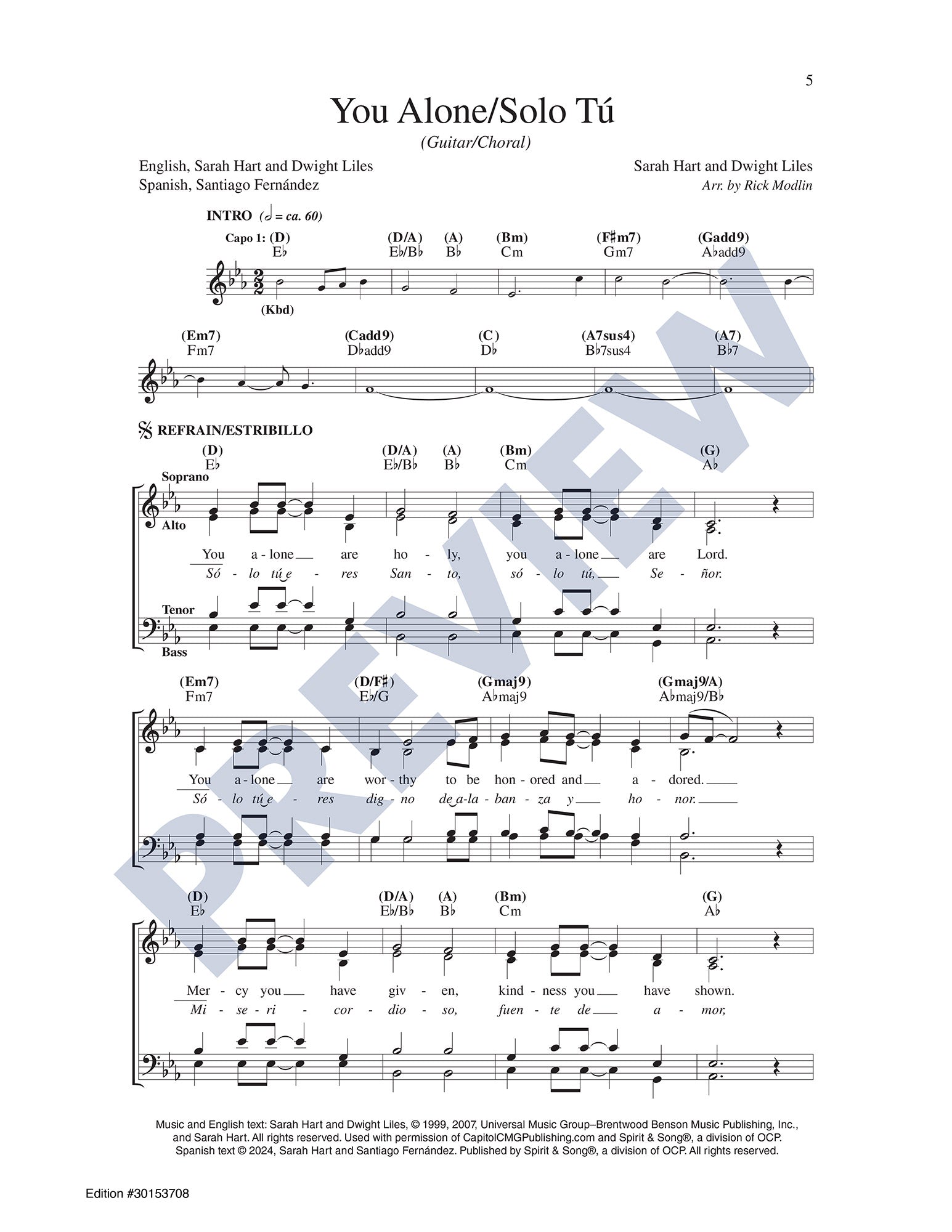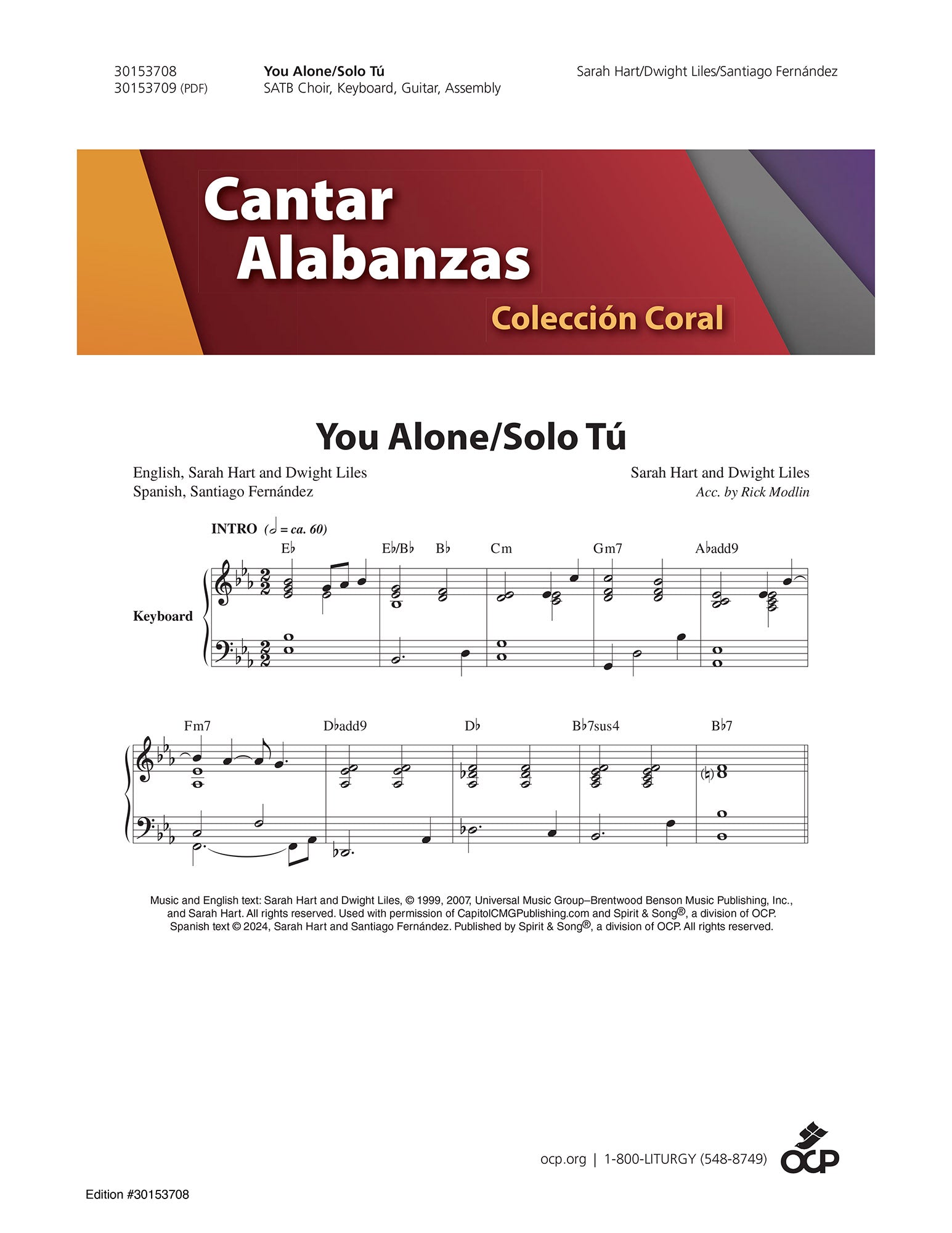 This well-known, anthemic song of praise by Sarah Hart and Dwight Liles will now have even broader appeal with a Spanish translation by Santiago Fernández. It can be sung strongly in unison (as shown on the keyboard accompaniment) or enhanced by the SATB choral parts included over the guitar accompaniment. With themes of mercy, God's love for us, and the forgiveness of sins through God's grace, this song is fitting for use throughout the liturgical year as well as retreats and Penance services.